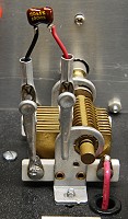 | Padder Capacitor Assembly: The ferrite rod coil used to tune the AM broadcast band requires a capacity of 328 pf to tune the bottom end of the band. The maximum capacity with both tuning capacitors meshed is (140 + 38) pf or 178 pf, which is not enough. To make up the difference, an additional 150 pf is placed in parallel across the bandset tuning capacitor as shown in the photo. With the padder connected, the receiver tunes from 560 kHz to 750 kHz. Without the padder, the receiver tunes from 730 kHz to 1550 kHz. |