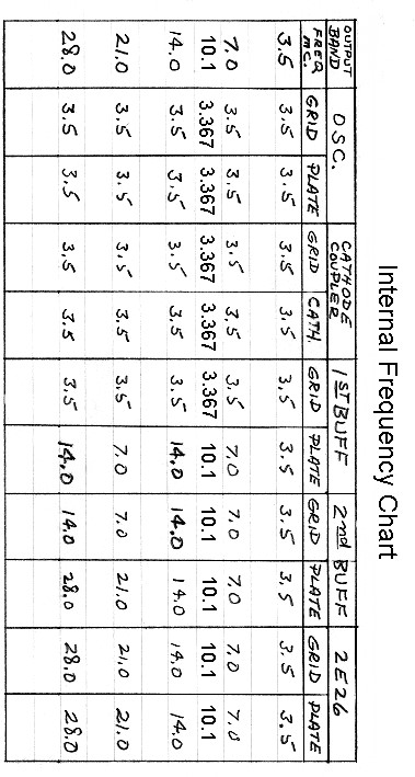 The chart below shows the internal frequency arrangement of the Wingfoot VFO