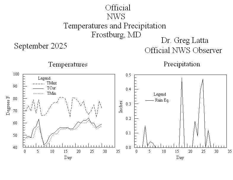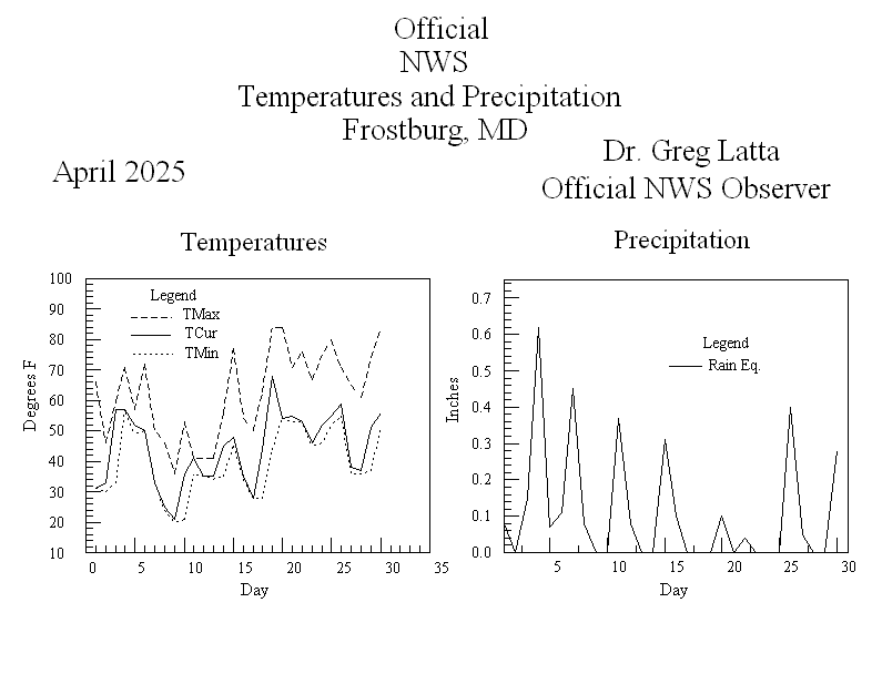 | Frostburg State University Weather Center | Current Data, Weathercam Image, Forecast, Access to Previous Data, Additional Links |
