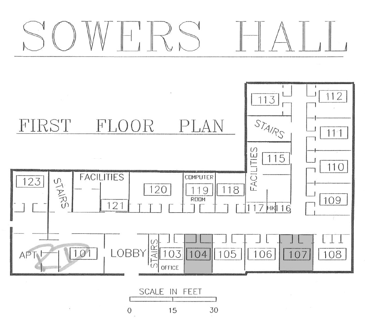 Sowers Hall, located near Compton Science Center, offers a welcoming residential community. College Avenue Subs operates out of the first floor. Originally built in 1965, the hall was fully renovated in 2008.