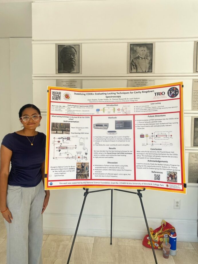 Senior Chemistry Major Clara Tavaraz completed research on cavity ringdown spectroscopy as part of the McNair Scholar’s Program over the summer.
