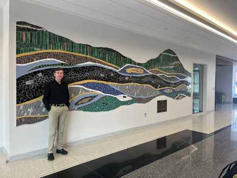 Swauger has been collecting rocks since childhood. “When I was little, I would come to the STEM Festivals here on campus,” he recalled. “I met Dr. Phil Allen, and every year I’d bring him new rocks to look at.” Those early connections later led Dr. Allen to suggest he donate minerals for the new campus artwork — pieces from Swauger’s own extensive collection. Soon after, he watched videos of Goodman assembling the installation and spotted minerals he had dug up himself.