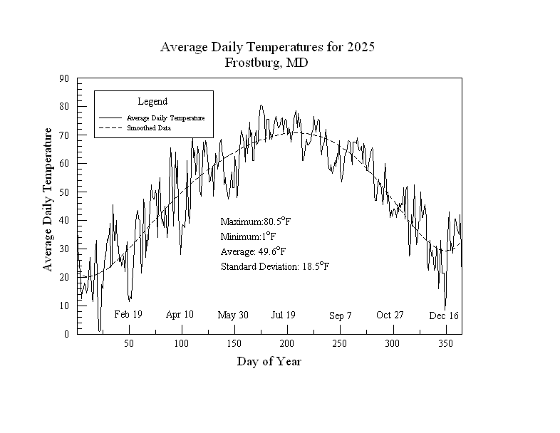 | Maximum Temperature for 2025: | 91° on June 24th |